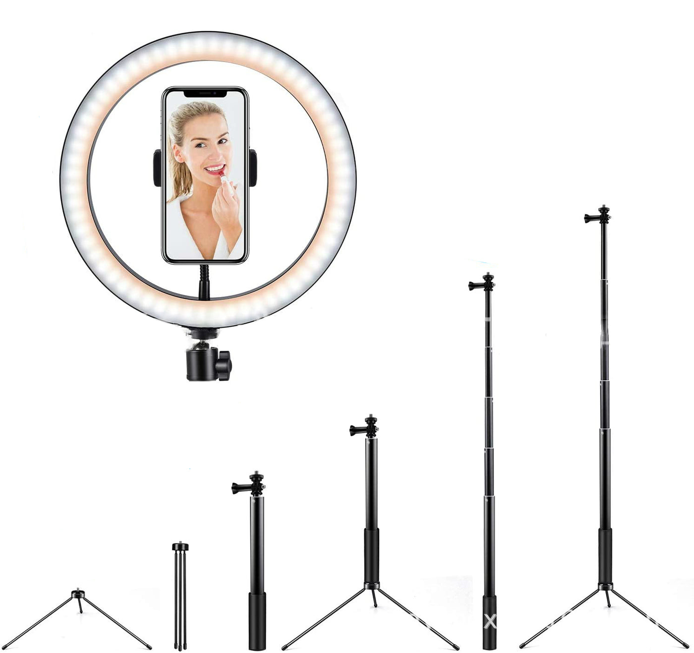 Packaging list: Ring light Bluetooth remote control selfie stick metal holder